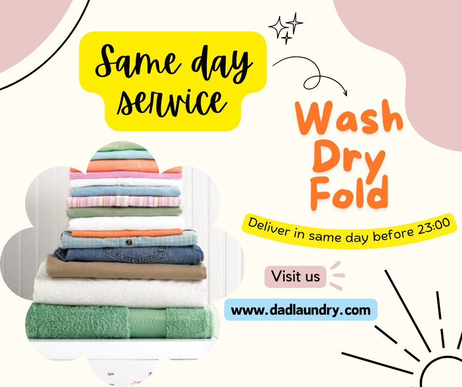 No need to wait until next day anynow. Now, DAD Laundry has same day service for wash-dry-fold. This is one choice for our lovely customer who need to clean your clothes within same day. Customers can spend your quality times for your business, traveling and etc. with your freedom. Let us take care your clothes.